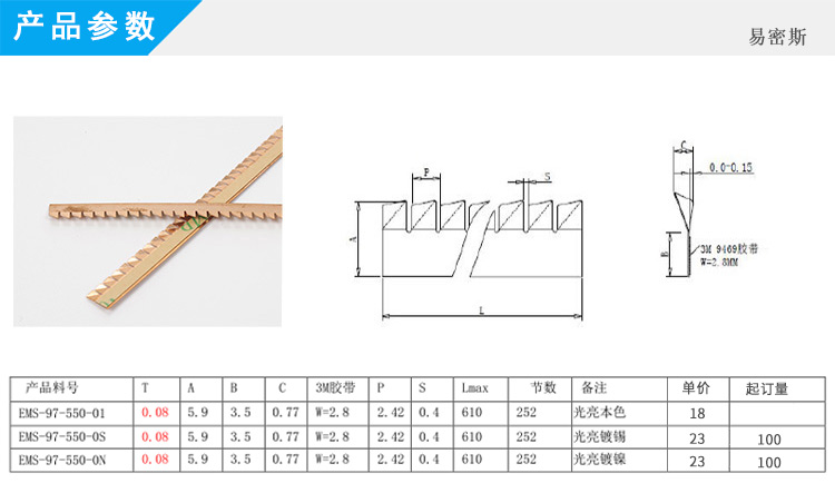 鋸齒類簧片Laird97-550\EMIS-H04較窄邊緣按照鈹銅簧片