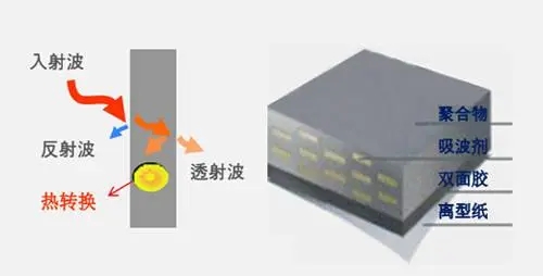 吸波材料一般是將合金粉通過各種工藝與高分子樹脂混合,壓延成柔性的片狀材料,通過磁滯損耗,介電損耗,電阻損耗等機理轉變?yōu)闊崮埽瑒菽艿绕渌问降哪芰?,達到屏蔽吸收電磁波的效果。